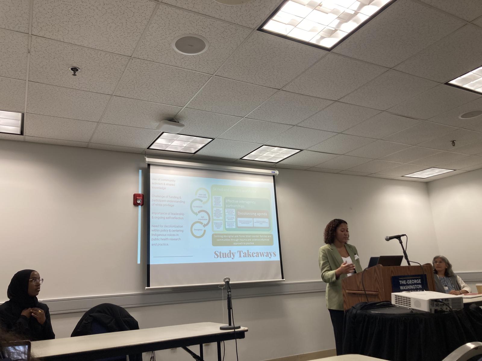 She reminded the students that colonization continues to this day, especially in research and medical institutions. Going through the history of institutions and the community is critical to see how colonization has infiltrated these organizations. We need to compel these institutions to be responsible for its decolonization and reckoning with the trauma they have inflicted on communities. At GW, the Equity Institute is supporting professors who value decolonization and research by promoting their tenure, awarding equity-focused research, and bolstering scholars who could benefit from GW infrastructure. She said D.C. is one of the most segregated and inequitable cities in the country, so GW should be at the forefront of addressing this issue.