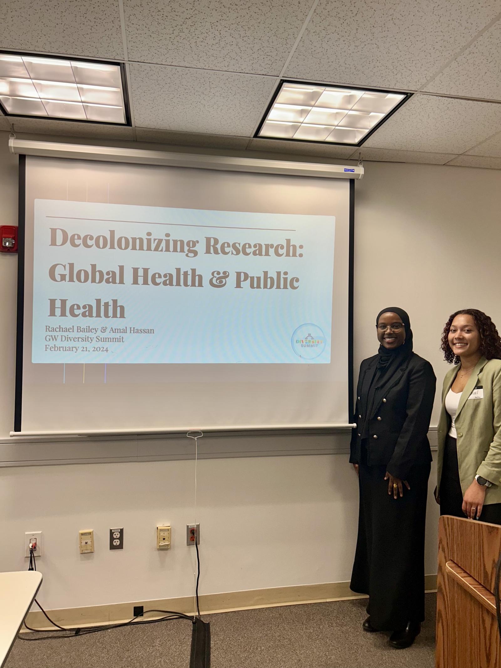 The GW Diversity Summit is an opportunity for students, faculty, and the community to form new knowledge related to current events impacting the field of diversity, equity, and inclusion. One session, titled "Decolonizing Research in Global and Public Health" was planned by two of our own MCH students: Rachael Bailey and Amal Hassan. The session focused on how community-based or participatory research methods can be used to decolonize public health and amplify the voices of marginalized communities in both domestic and international settings. Through group discussion, case study examples, and an expert panel, participants gained an understanding of what decolonization means in the context of academia and how these techniques can be applied to their own research.