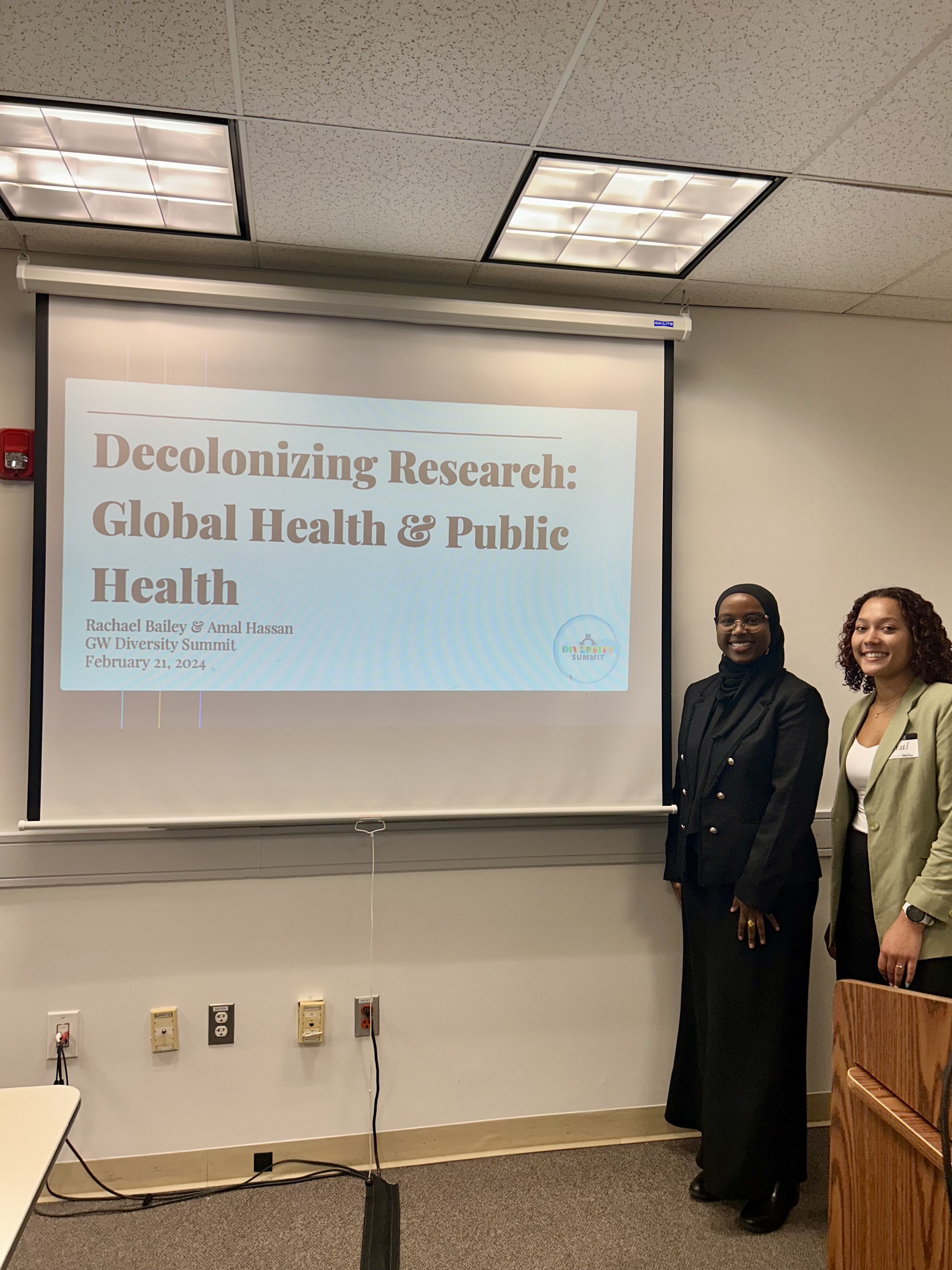 The GW Diversity Summit is an opportunity for students, faculty, and the community to form new knowledge related to current events impacting the field of diversity, equity, and inclusion. One session, titled "Decolonizing Research in Global and Public Health" was planned by two of our own MCH students: Rachael Bailey and Amal Hassan. The session focused on how community-based or participatory research methods can be used to decolonize public health and amplify the voices of marginalized communities in both domestic and international settings. Through group discussion, case study examples, and an expert panel, participants gained an understanding of what decolonization means in the context of academia and how these techniques can be applied to their own research.