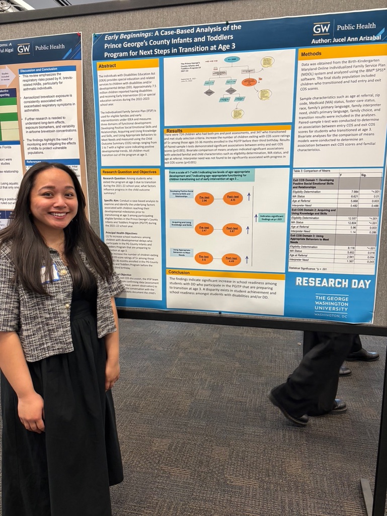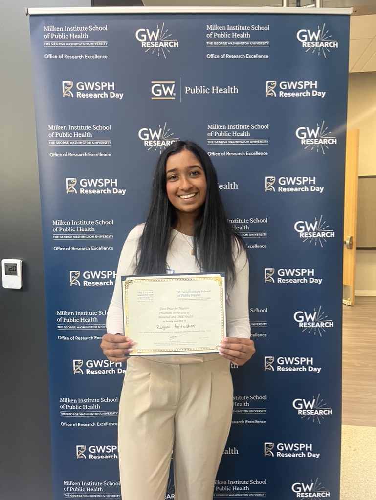 I had the incredible opportunity to present my Culminating Experience project at George Washington School of Public Health’s Research Day 2025, and I was thrilled to receive first place in the Maternal and Child Health Prize Category.