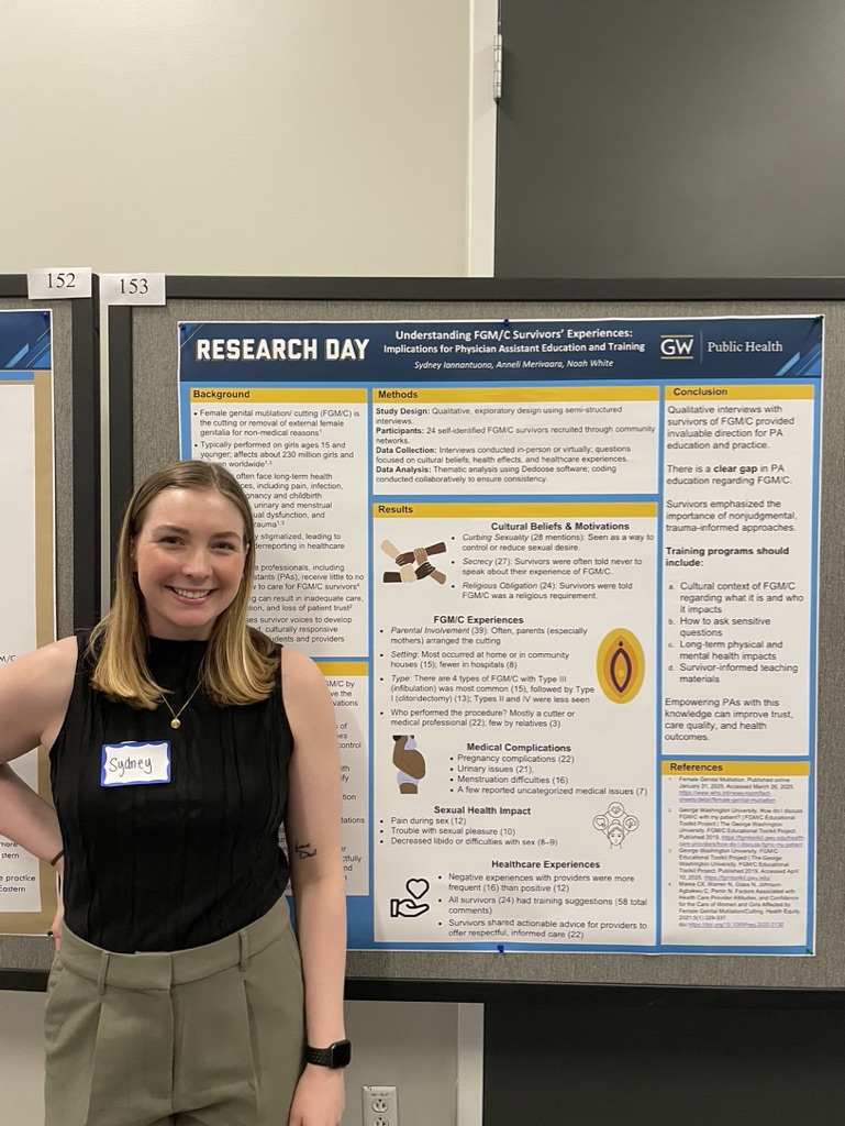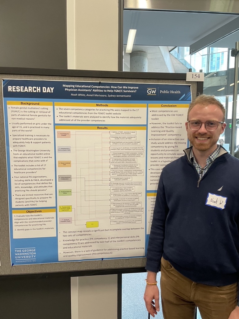 As part of our research on female genital mutilation/cutting (FGM/C), we explored how the GW FGM/C Provider Education Toolkit aligns with the competencies taught in GW’s Physician Assistant (PA) program. In doing so, we found a strong overlap, specifically in knowledge for practice and interpersonal and communication skills, matching almost all of the competencies. However, one major gap emerged under the competency of “Practice-Based Learning and Quality Improvement”, specifically surrounding PAs having the opportunity to apply knowledge to real-world, survivor-informed clinical scenarios.